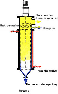 重組份(高沸點)沿著加熱面以螺旋型軌道流向蒸發(fā)器底部(大約幾秒)從出口排出。